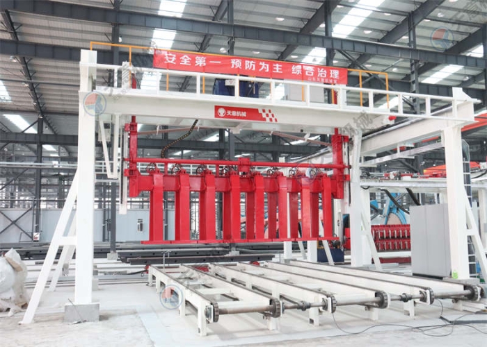 將板材吊運(yùn)至板材輸送機(jī)或者將砌塊吊運(yùn)至移動并坯機(jī)上;