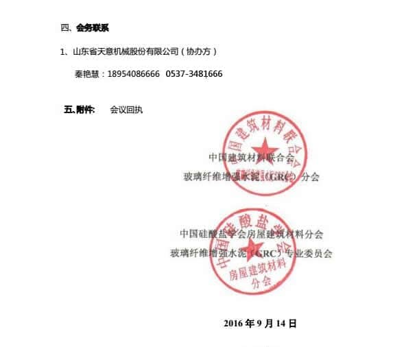 GRC 協(xié)會及 GRC 專業(yè)委員會(中國混凝土與水泥制品協(xié)會 GRC分會、中國硅酸鹽學(xué)會房建材料分會 GRC 專業(yè)委員會)2016 年年會定于 11 月4-6 日在山東兗州圣德國際酒店舉行。本次年會將圍繞“GRC 技術(shù)創(chuàng)新與裝配式建筑”主題,交流。